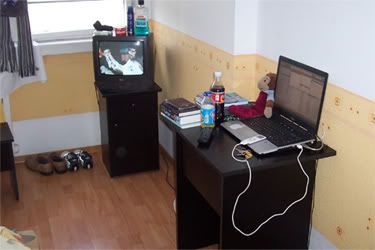 I got a taxi to my hotel, which to be honest was a bit of a shithole. I did only pay seventy quid for five days though - can't complain. I got it looking a little nice once I'd unpacked Paul's laptop and hung up my clothes.